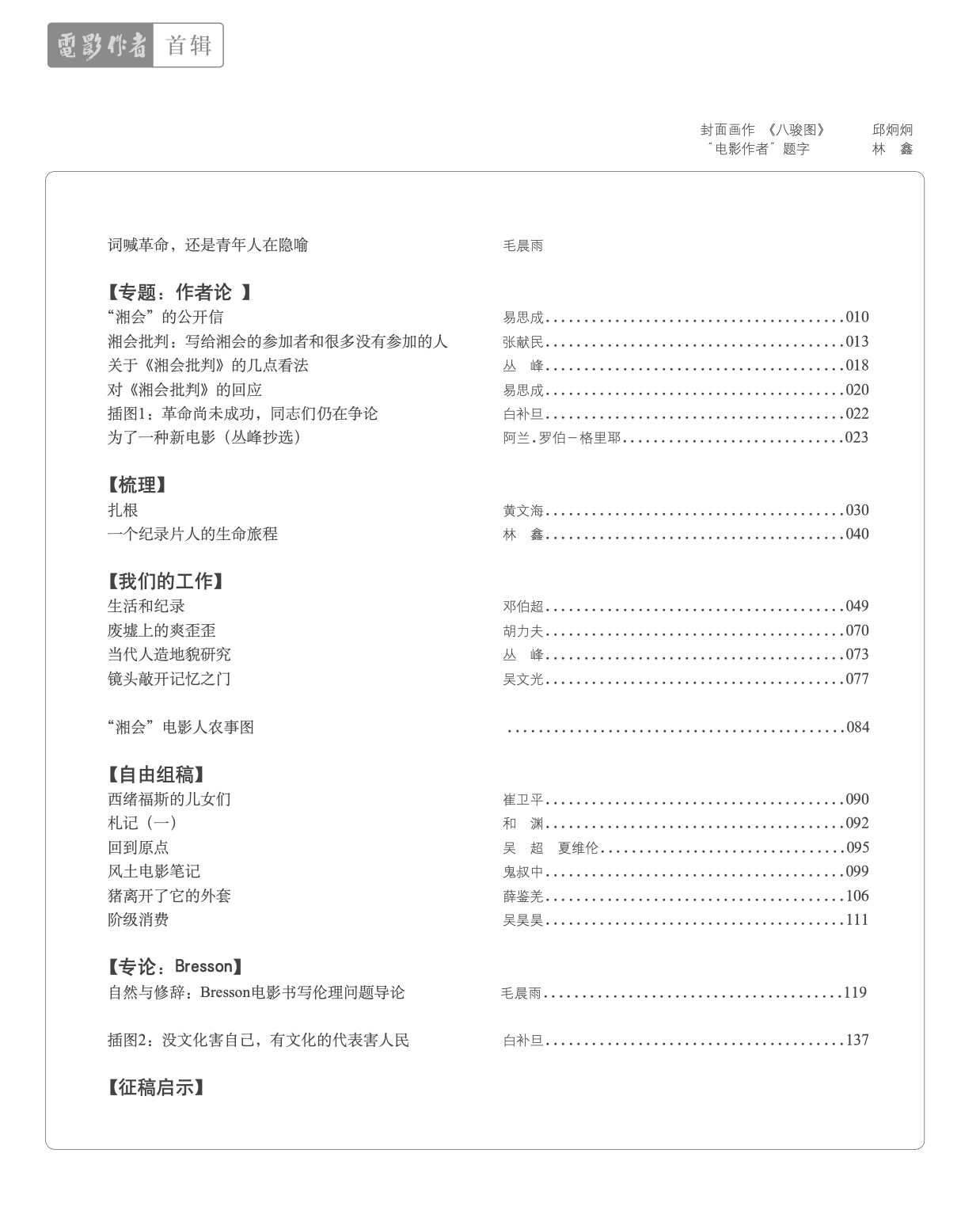 回顾艺术史和电影史,一个伟大的创作现象和潮流离不开伟大的评论。但评论的目的不是指导和干预一个处于正 在进行时的创作现象,也不是忙于对它给出价值判断,而是在影像之外,用文字纪录下对创作的观看和思考,它抒写 批评者对于创作的感受和认知,梳理一个创作现象发生、成长的历程,并伴以作者个体和群体对创作经验的自我阐述。这些影像和文字的去处,将是一部电影史、一部艺术史、一部心灵史,他们首先能够感动和感悟这个时代的观众和读者,且终将抵达永恒,成为公共文化和知识,并成为后来艺术创作的营养。
